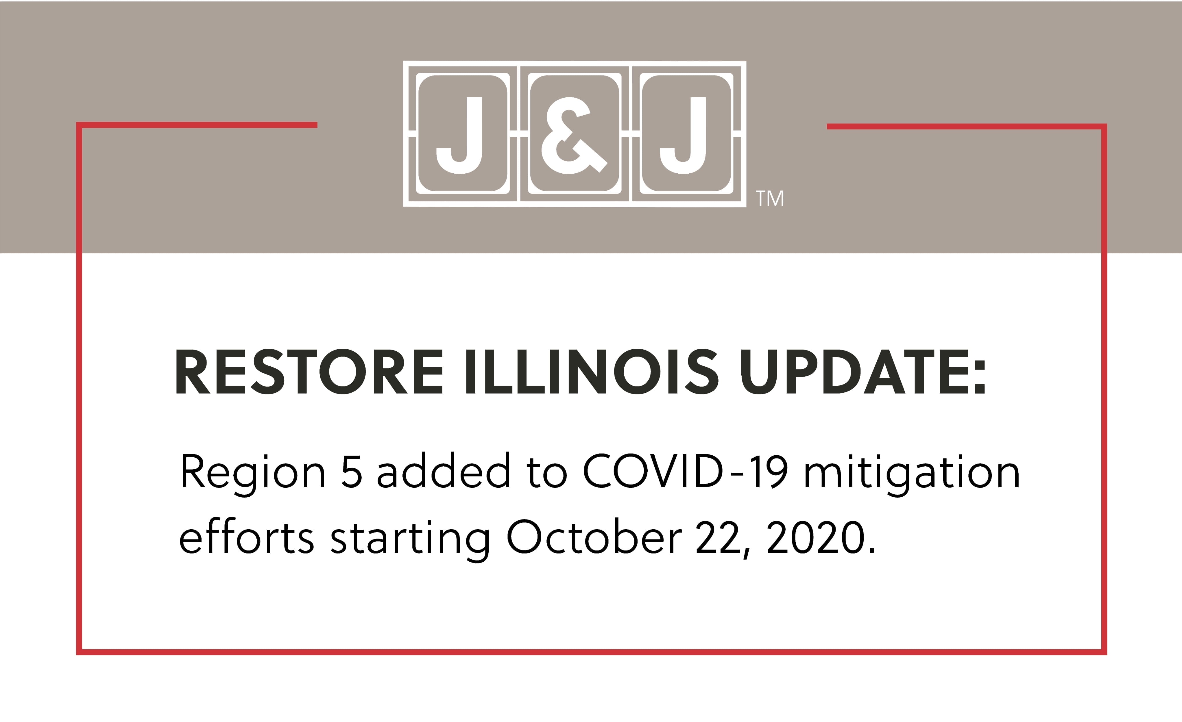 October 20, 2020 – Governor Pritzker and the Illinois Department of Public Health (IDPH) are announcing COVID-19 mitigation efforts will be implemented in Region 5, Southern Illinois, beginning at 12:01 a.m. on Thursday, October 22, 2020. Region 5 includes Marion, Jefferson, Wayne, Edwards, Wabash, Perry, Jackson, Franklin, Williamson, Saline, Hamilton, White, Gallatin, Union, Johnson, Pope, Hardin, Alexander, Massac, and Pulaski counties.