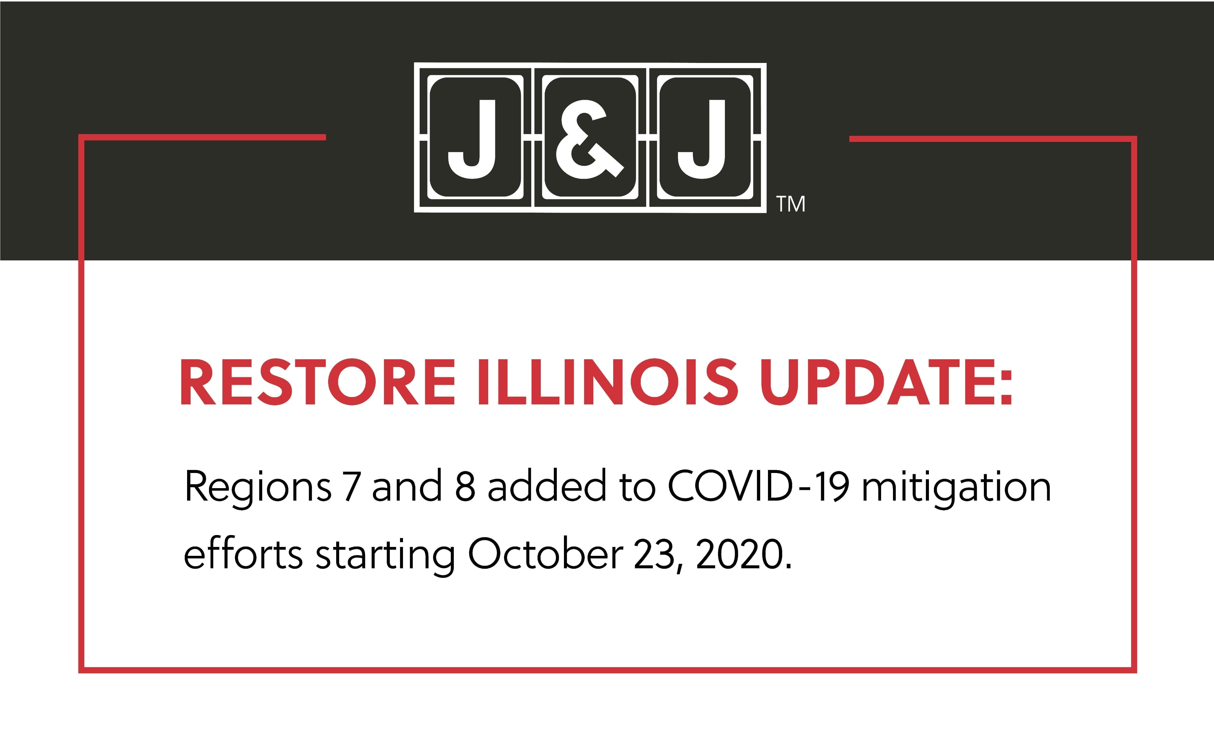 October 21, 2020 – The Illinois Gaming Board has announced that beginning October 23, 2020, food and beverage service in video gaming locations in Region 7 (Will and Kankakee counties) and Region 8 (Kane and DuPage Counties) is suspended. Outdoor service, curbside and carryout is permitted. Current mitigation measures will remain in effect, so that all video gaming operations at licensed locations in Region 7 & 8 will be limited to the hours of 8:00 AM to 11:00 PM daily – with no exceptions.