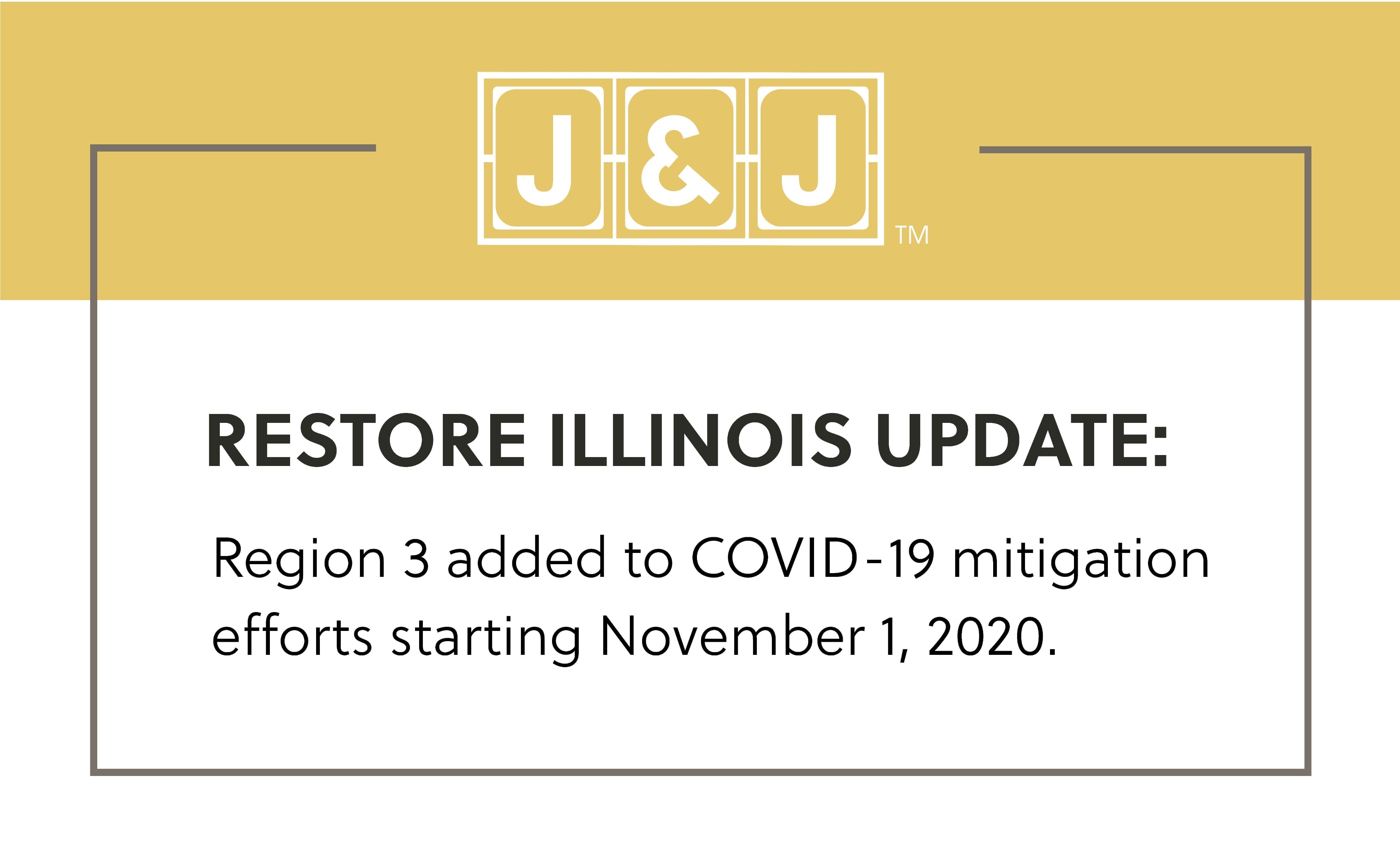 October 30, 2020 – Governor Pritzker and the Illinois Department of Public Health (IDPH) are announcing COVID-19 resurgence mitigations will be implemented in Region 3, West-Central Illinois, beginning at 12:01 a.m. on Sunday, November 1, 2020. Video gaming operations at all licensed video gaming locations in Region 3 will be limited to the hours of 8:00 AM to 11:00 PM daily – with no exceptions. Food and beverage service in these locations is suspended, but outdoor service, curbside and carryout is still permitted.