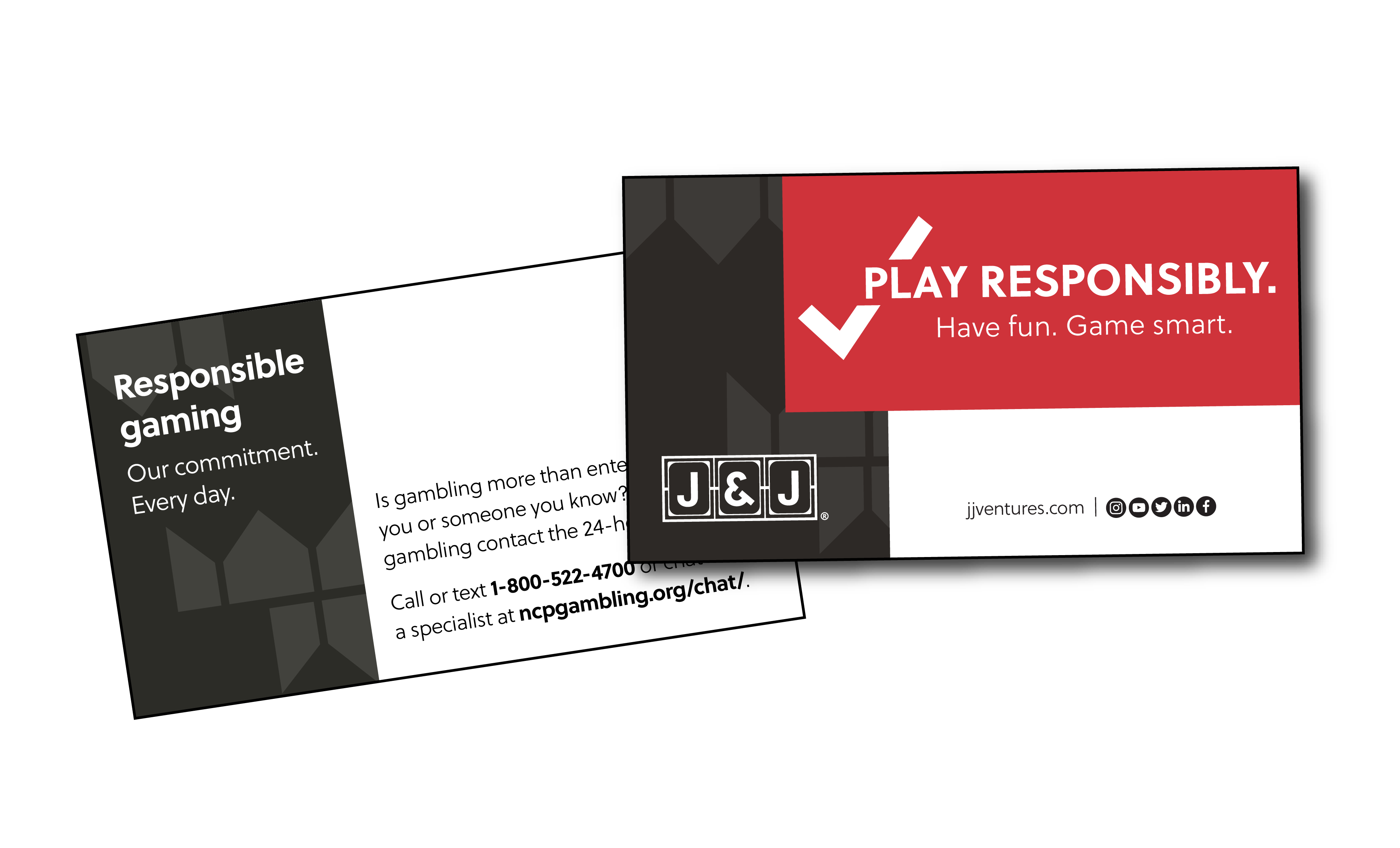 J&J Gaming supports the American Gaming Association (AGA) in its annual recognition of Responsible Gaming Education Month (RGEM) in September. This year marks the 25th Anniversary of the AGA supporting Responsible Gaming Education and providing assistance to gaming patrons across the nation. J&J Gaming supports our establishments and their patrons by providing useful tools inside the gaming room including our responsible gaming cards, posters and social media assets to promote the cause.
