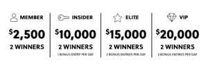 From May 15th through June 30th, patrons can enter to win at J&J participating Player PAYBACK® locations by completing a check-in on the kiosk; automatically earning an entry into the sweepstakes. Patrons are limited to one entry per day on the Player PAYBACK® kiosk, however, each time a patron completes an entry into the Giveaway, they may qualify for automatic bonus entries, based on their tiered rewards level. The patron’s reward level status is based on the number of check-ins from the last day of the 1st quarter of 2024, March 31st. The program’s Insider level will receive one (1) additional entry, the Elite level will receive two (2) additional entries, and the VIP level will receive three (3) additional entries into the 95th Anniversary sweepstakes!