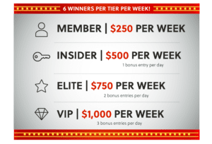 J&J’s Reel Stars will award 160+ winners, that’s 6 winners per tier, per week and each week is a separate entry period. Each time a patron completes an entry into the Sweepstakes, they may qualify for automatic bonus entries, based on their tiered rewards level in J&J’s Player PAYBACK® regards program.