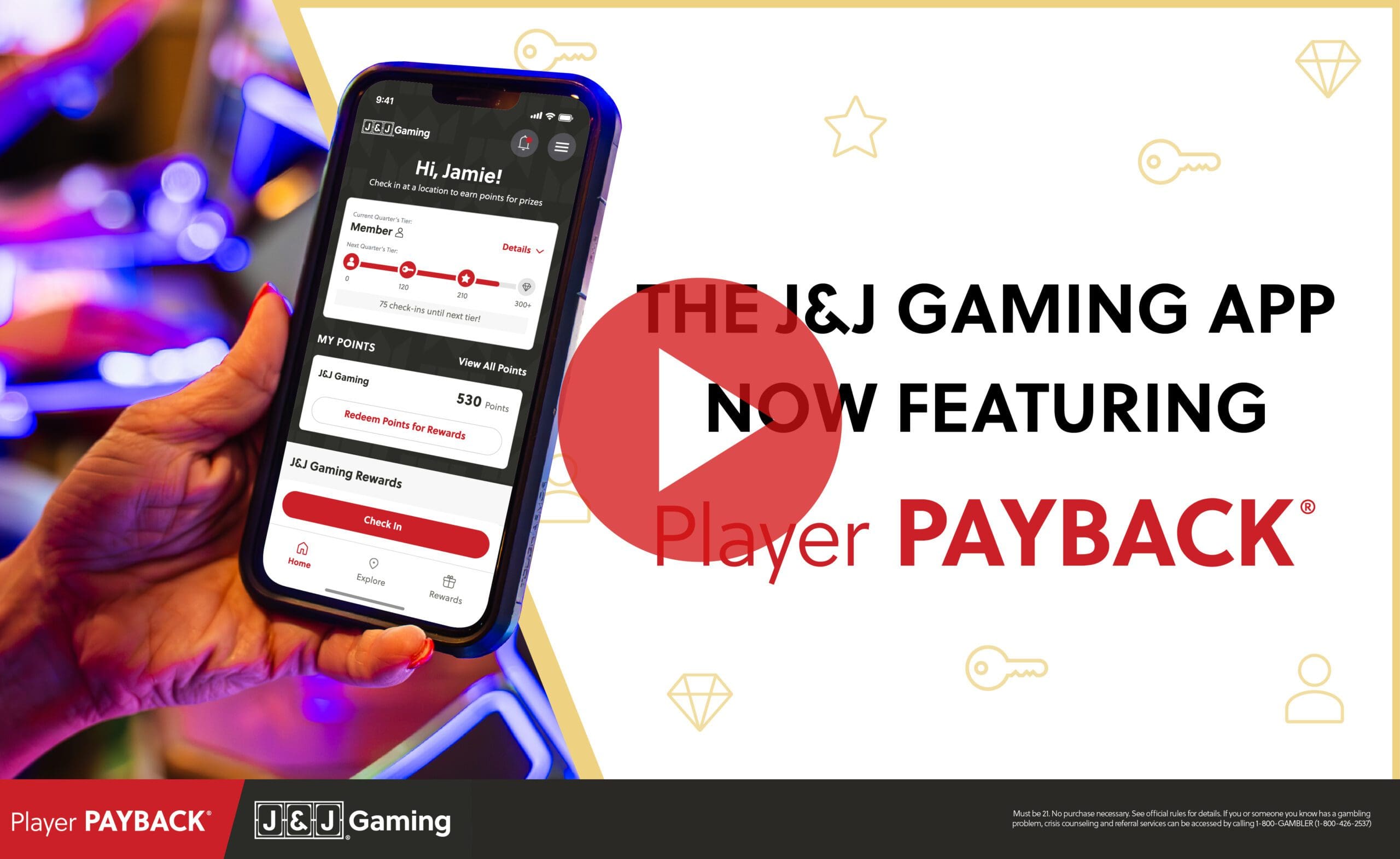 J&J Gaming is delighted to officially announce the launch of our NEW J&J Gaming App! Our innovative app brings all the best features of our Player PAYBACK® rewards program, now with even more excitement and convenience, making it the ultimate destination for earning rewards, winning prizes, and unlocking exclusive perks! Download now and explore the new Player PAYBACK® experience on the J&J Gaming app! The J&J Gaming App is available for download in Google Play and Apple App Stores across all major mobile devices.